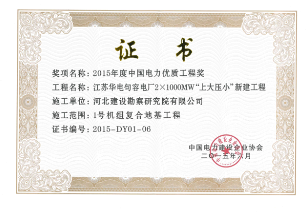 近日,我公司參建的江蘇華電句容電廠2×1000MW“上大壓小”新建工程獲得2015年度中國電力優質工程獎。