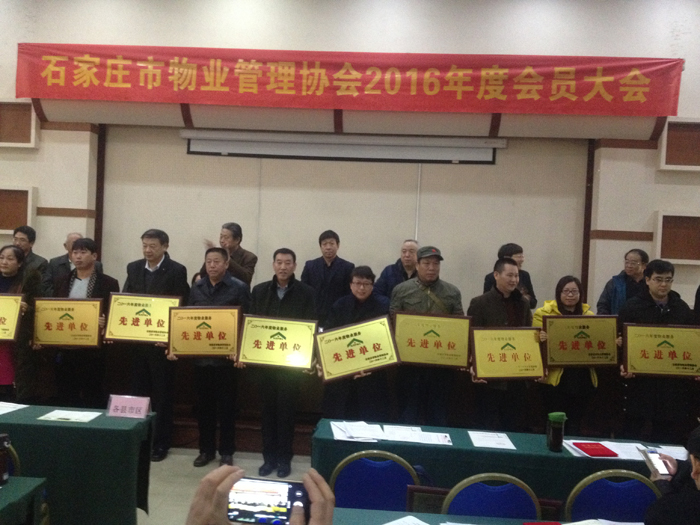 2016年12月28-29日,石家莊市物業管理協會2016年度會員大會在西柏坡明苑酒店召開,市住建局、市物業協會有關領導和各會員單位代表500余人參會。會上,對一年來為行業發展做出突出貢獻的先進單位、先進個人進行了表彰通報。我物業服務公司榮獲“石家莊市物業服務先進單位”,張運凱經理榮獲“物業服務先進工作者” 榮譽稱號。我物業公司將以此為契機,繼續推進服務創優,加強物業管理,持續提高物業服務水平,為廣大業主提供更好的物業服務。