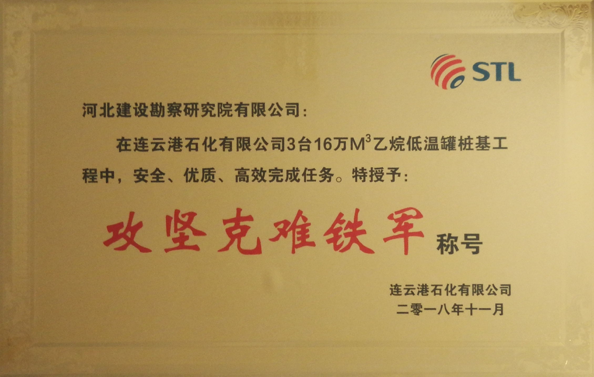 連云港石化有限公司320萬噸/年輕烴低溫儲罐樁基工程榮獲“攻堅克難鐵軍”稱號