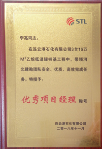 2018年12月14日連云港石化有限公司副總經理孫剛特向我公司李友東經理親自頒發“攻堅克難鐵軍”稱號獎牌,向項目經理李亮同志頒發“優秀項目經理”榮譽稱號,并致感謝信,對我公司表現出來無私奉獻、頑強拼搏的精神給予了高度肯定。河北建勘“鐵軍”風采、勇創第一的精神,獲得了業主及各方一致贊譽,并衷心希望我們雙方在今后的工作中精誠合作,共鑄輝煌!