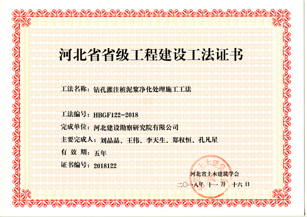近日,河北省土木建筑學會組織專家對建筑施工企業申報工法進行了評審,我公司申報的礁灰巖地層中旋挖鉆孔灌注樁施工工法、鉆孔灌注樁泥漿凈化處理施工工法、一種承臺預埋地腳螺栓的定位施工工法,被評為2018年度省級工程建設工法。