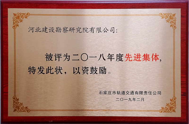 公司榮獲石家莊軌道交通有限責任公司2018年度“先進集體”和“先進個人”的榮譽表彰