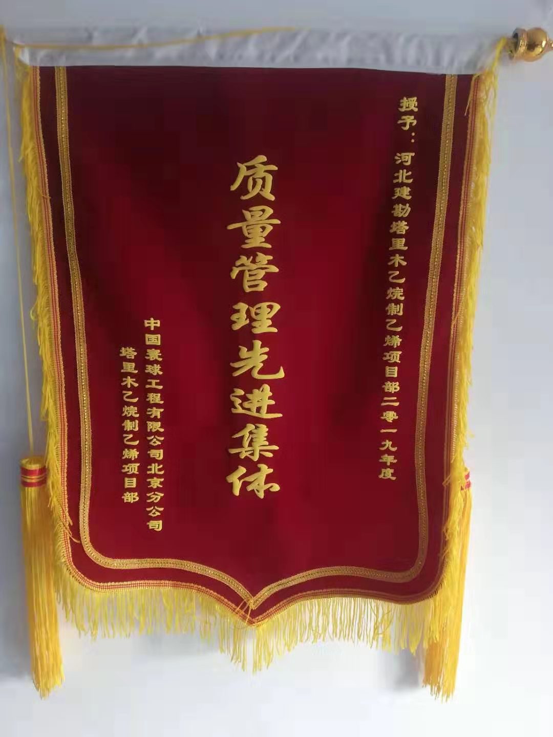 公司近日收到業主塔里木油田公司乙烯工程建設項目經理部的感謝信及中國寰球工程有限公司北京分公司的質量管理先進集體錦旗。在建設期間,我公司面對現場條件復雜、工期緊張等諸多不利因素,全體施工人員齊心協力、盡職盡責、積極主動、協調推動各工作有序開展,在施工中,嚴把質量安全觀、強化安全質量管理、發揮團隊凝聚力,很好的完成了各項施工任務,為雙方進一步加強戰略合作、實現互利共贏奠定了良好基礎。