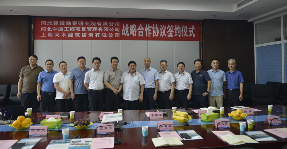 7月29日,河北建設勘察研究院有限公司、河北中原工程項目管理有限公司、上海同木建筑咨詢有限公司戰略合作協議簽約儀式,在我公司舉行。