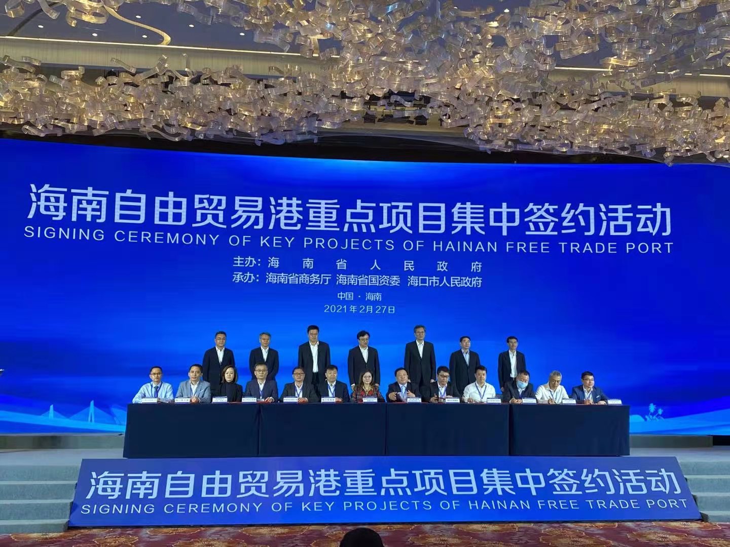 2021年2月27日下午,海南自由貿(mào)易港2021年(第一批)重點項目集中簽約儀式在海口市海南迎賓館舉行。受公司領(lǐng)導委托,張樹臣同志代表我公司出席簽約儀式,并順利與海口市江東新區(qū)成功簽約。