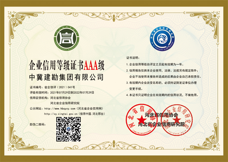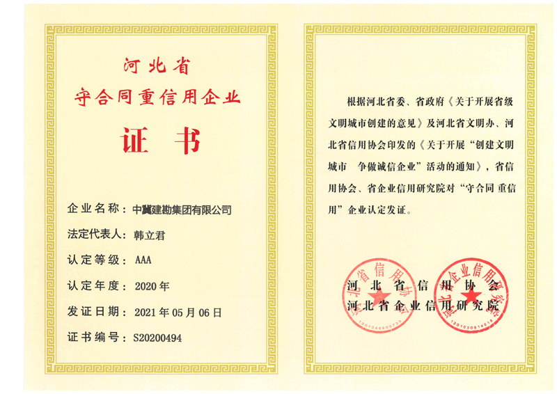根據(jù)河北省信用辦、河北省信用協(xié)會(huì)等七部門印發(fā)的《關(guān)于開展“推進(jìn)誠信建設(shè)共建信用河北”的活動(dòng)方案》的通知,河北省信用協(xié)會(huì)、河北省企業(yè)信用研究院對“守合同重信用”企業(yè)進(jìn)行認(rèn)定,我公司繼續(xù)被評(píng)定為“河北省AAA級(jí)守合同重信用企業(yè)”。