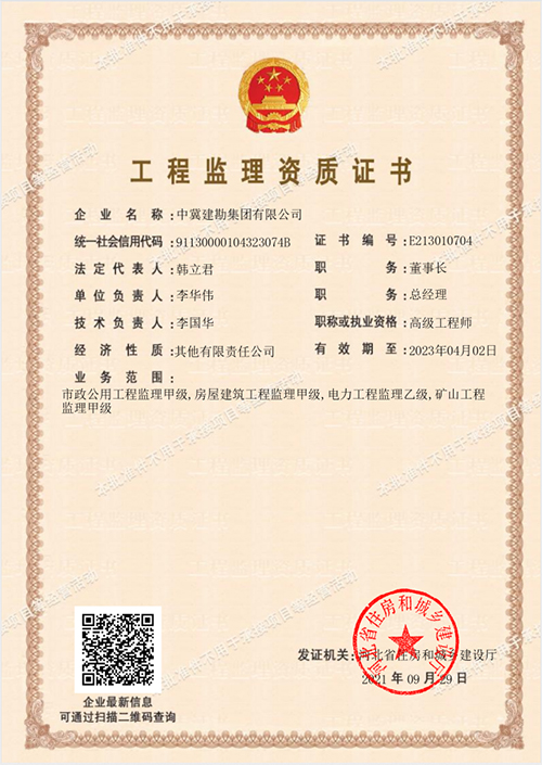 二、公司于2021年9月29日取得了市政公用工程監(jiān)理甲級資質(zhì)證書,可承接以下工程監(jiān)理項(xiàng)目: