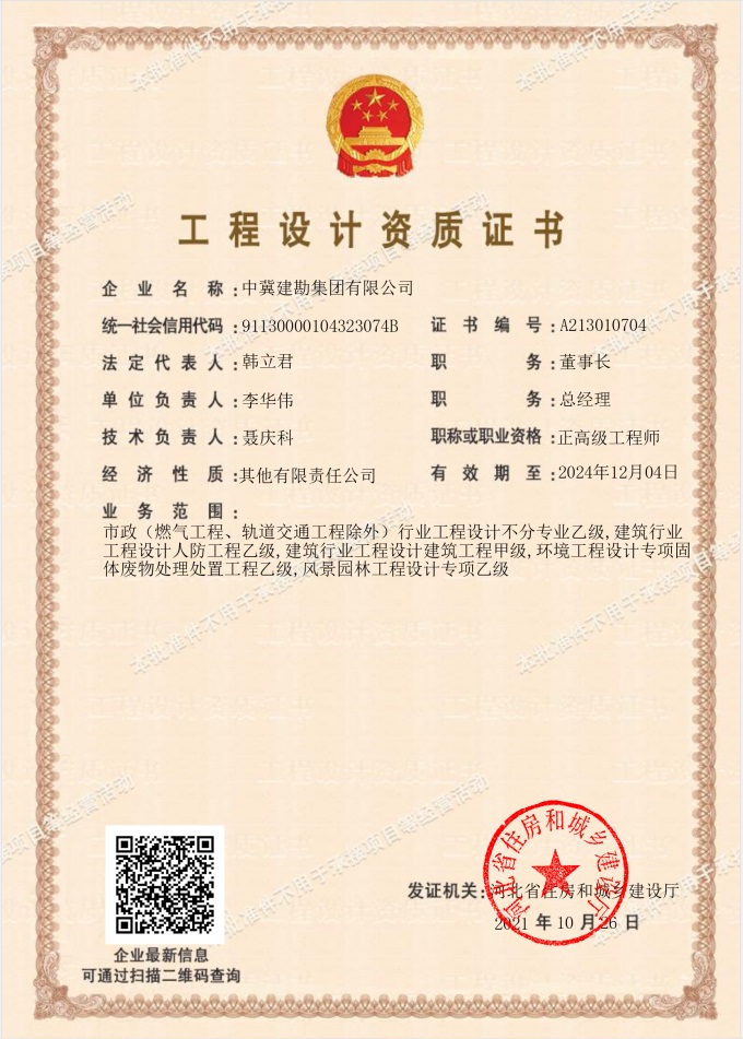 公司于2021年10月26日取得了環境工程設計專項(固體廢棄物處理處置工程)乙級資質證書,可承擔中型以下規模環境工程(含建構筑物和非標準設備等)專項設計。