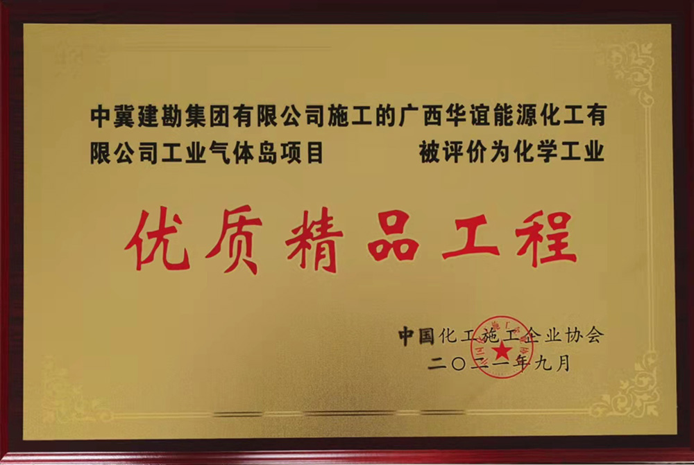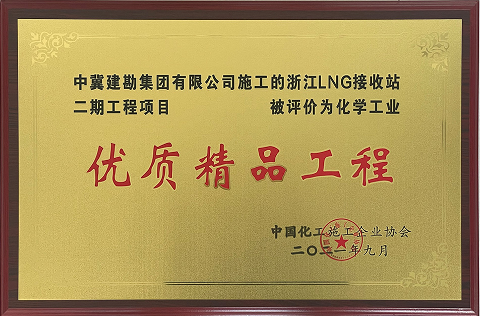 近日,由我公司承建的浙江LNG接收站二期儲罐樁基工程施工項目、廣西華誼能源化工有限公司工業(yè)氣體島項目兩項工程榮獲中國化工施工企業(yè)協(xié)會頒發(fā)的“優(yōu)質(zhì)精品工程”獎。