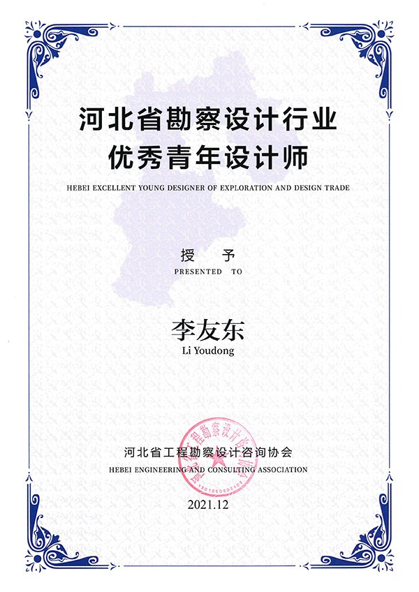 近日,公司監事會主席李友東、副總經理劉晶晶被河北省工程勘察設計咨詢協會授予“河北省勘察設計行業優秀青年設計師”稱號。