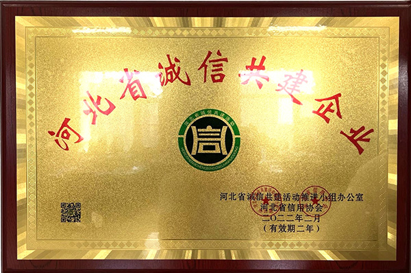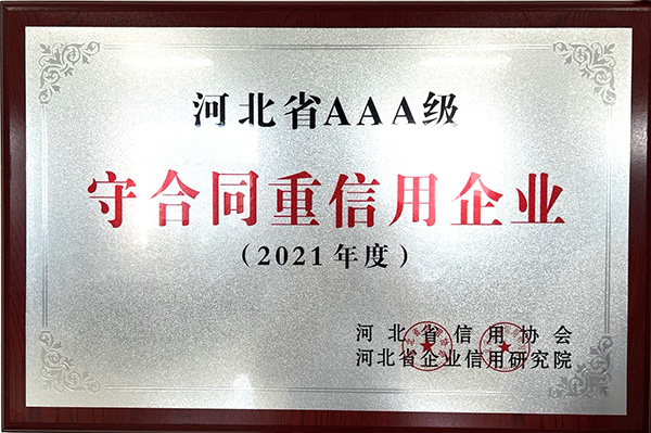 根據(jù)河北省信用辦、河北省信用協(xié)會等七部門印發(fā)的《關于開展“推進誠信建設共建信用河北”的活動方案》的通知及《關于2021年度河北省“守合同重信用”企業(yè)申報認定工作的通知》,我公司被評為“河北省誠信共建企業(yè)”和“河北省AAA級守合同重信用企業(yè)”。