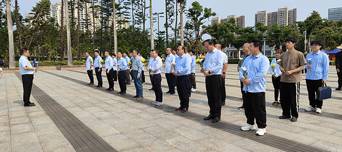上午10時,烈士陵園內莊嚴肅穆,革命烈士紀念碑巍然矗立。全體人員整齊列隊,手持白菊,面向紀念碑列隊肅立。全體人員向為解放海南島英勇犧牲的革命先烈英雄紀念碑三鞠躬,并默哀一分鐘,追思先烈為民族獨立、人民解放事業英勇獻身的崇高精神。隨后,職工代表們緩步上前,依次瞻仰紀念碑并敬獻鮮花,輕輕擦拭烈士墓碑上的浮塵,用行動表達對英雄的深切緬懷。