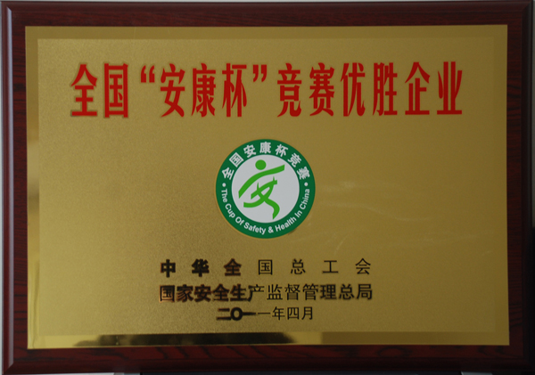 公司在2010年度全國(guó)“安康杯”競(jìng)賽活動(dòng)中榮獲優(yōu)勝單位稱號(hào),這是我公司連續(xù)七年榮獲全國(guó)安康杯競(jìng)賽優(yōu)勝單位。