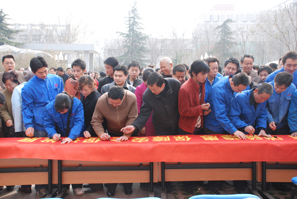 4月2日上午9時,公司機關(guān)及在外的24個工程項目部共1500多名員工,在同一時間、不同地點,隆重舉行2009年“安康杯”安全生產(chǎn)競賽活動啟動儀式暨“強化預(yù)防,消除隱患,保障安全,促進發(fā)展”主題簽名活動。