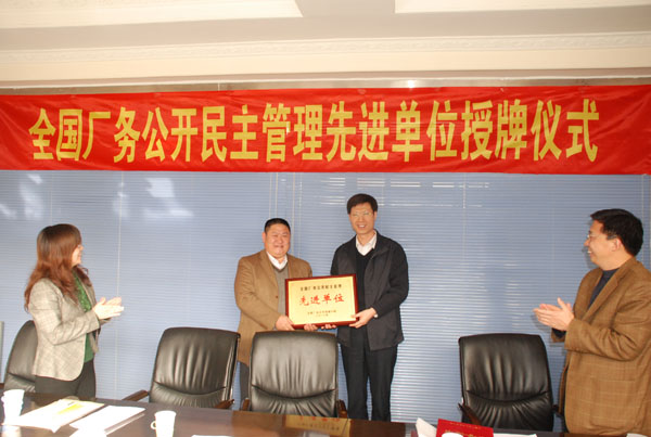 12月10日,省直工會范金龍主任陪同河北省總工會副主席劉書為等蒞臨我公司,頒發(fā)“全國廠務公開民主管理先進單位”獎牌、證書。全國榮獲此殊榮的共有408家,河北省直僅有我公司一家。