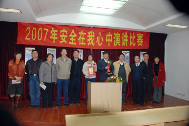 2007年10月30日由公司工會、設備安全部、公司團委聯合舉辦了“安全在我心中”演講比賽。經過各單位組織選拔,共有13名選手參加了演講。經認真評比,評出一等獎一名、二等獎二名、三等獎四名、優秀組織獎一名。比賽在緊張和諧的氣氛中圓滿結束。